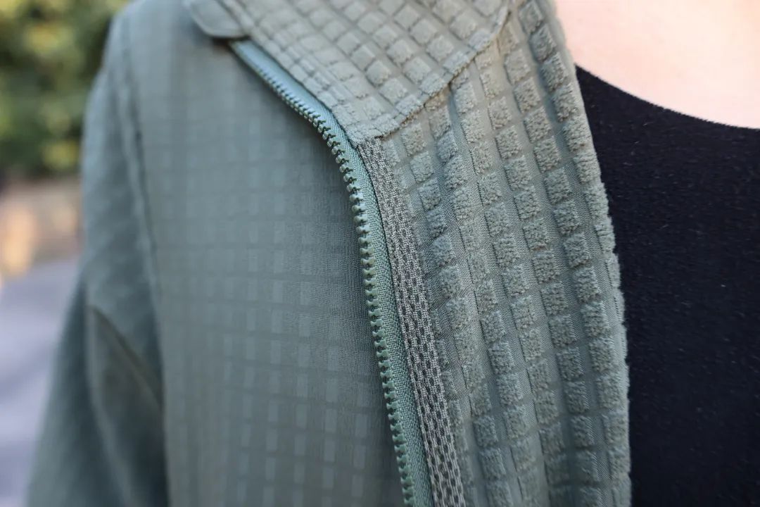 輕量抓絨面料,泛應用于戶外運動服裝中,具有出色的透氣、保暖和快干性能??蓪⒑顾杆傧蛲馀欧牛3稚眢w干爽。同時,該面料具有彈力,輕盈柔軟、耐磨損等特點,穿著舒適并且非常耐用。其抓絨的工藝增加了纖維縫隙,鎖住體溫,從而形成保溫的效果,即使在潮濕的環境下,也能保持較好的保暖性。