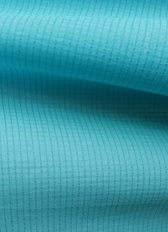 該款產品是平紋春亞紡面料(CPT242001S),由細旦滌綸抗UV紗織造而成。波光藍,布面光滑,手感極佳,質地輕而堅勞耐磨。面料的抗紫外性能非常好,可做防曬衣或其他防曬服裝。該款防曬衣自帶連帽設計,可以有效遮擋陽光,實用方便,美觀時尚。整體版型休閑簡約,小清新的顏色,帶來清爽活力。